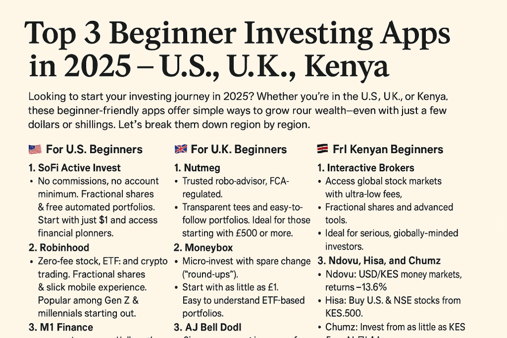 Top 3 Beginner Investing Apps in 2025 – U.S., U.K., Kenya